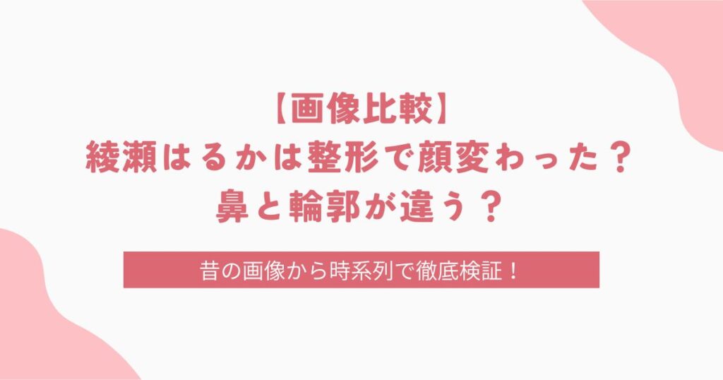 【画像比較】綾瀬はるかは整形で顔変わった?鼻と輪郭が違う?昔の画像から時系列で調査!