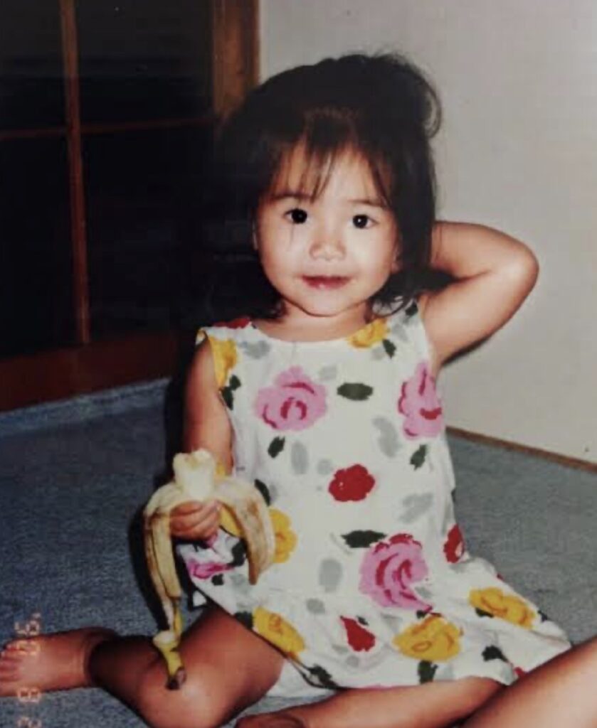 幼少期のあ〜ちゃんは、丸い目とふっくらしたほっぺが可愛らしく、今の面影もしっかり感じられる愛嬌のある表情をしています。
